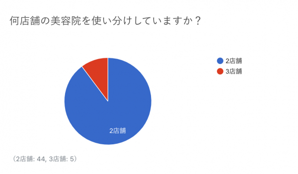 使い分ける美容院の店舗数は、ほとんどが2店舗を使い分けており、多くても3店舗までとなっておりました。