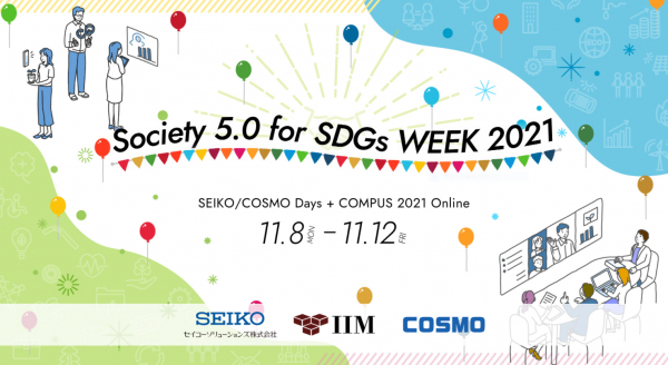 セイコーソリューションズ株式会社(本社:千葉県千葉市)およびグループ会社の株式会社 アイ・アイ・エム(本社:東京都中央区)、株式会社 コスモ(本社:東京都江東区)は、3社共催のオンラインカンファレンス「Society 5.0 for SDGs WEEK 2021」を2021年11月8日~11月12日に開催します。