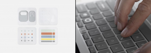 Surface アダプティブ キット は、障碍のある人々との協力により、マイクロソフトの Inclusive Tech Lab で開発されました。このキットは、形状や機能面での妥協をすることなくデバイスをよりアクセシブル、すなわち操作しやすくするために設計されています。キーキャップラベル、3D バンプラベル、ポートインジケーター、さらにはデバイスオープナーなどが、見つけたり、開いたり、使ったりすることを誰にとっても容易にしてくれます。