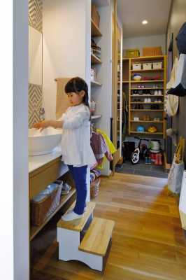 新型コロナウイルス感染症にかかる子どもの感染場所は家庭内が7割を超えるというデータがあり、住宅の空気環境や衛生環境が非常に重要となっている。本作品は室内の空気環境を改善する技術として、家族が集うリビングを重視した空間構成など、空気環境の改善対策が多角的かつ緻密に考えられている。外気の温度を利用した快適かつ省エネルギーな熱交換換気システムなど経済合理性にも配慮がある。住宅はもちろん家族全員の空間であるが、子どもへの安全性の配慮が明確である。