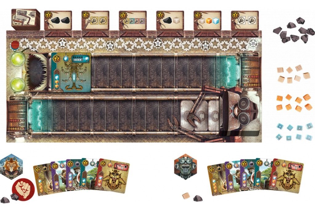 自分の手番でプレイヤーは、手札の機械を共通のゲームボードである「ガラクタ場」にプレイするか、ガラクタ場の機械を修理して自分の「作業場」に置くことができます。
