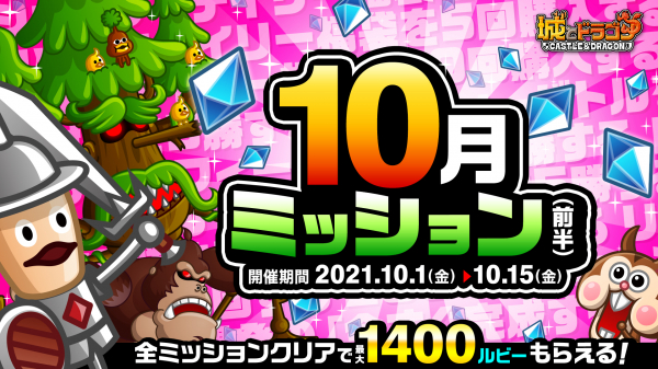 株式会社アソビズム(本社:東京都千代田区、代表取締役:大手智之)は、App Store・Google Playにて好評配信中の『城とドラゴン』で、「10月ミッション(前半)」を2021年10月1日(金)より開催いたします。