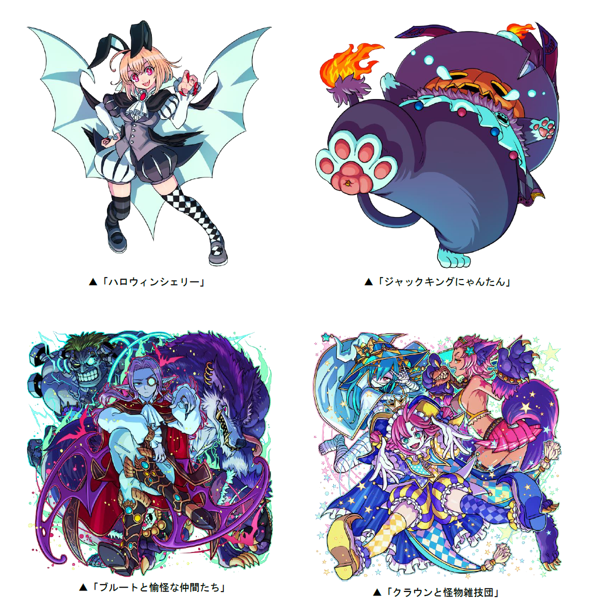 本ダンジョンには、ボスとして「ジャックキングにゃんたん」が出現します。また、道中には「ブルートと愉怪な仲間たち」「クラウンと怪物雑技団」や、新たに「ハロウィンシェリー」などが出現し、ダンジョンをクリアした回数に応じて竜石を手に入れることができます。