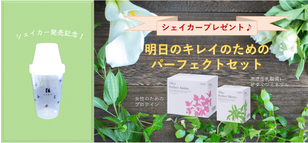 ビタミンEを配合したオリジナルオイル「セラリキッド」の販売や、治療院の運営等を手掛ける株式会社セラ(本社:東京都港区南青山3-14-26/代表取締役社長:町田映子)の公式ストア「セラストア」では、2021年10月4日より10月25日まで新しくなったCERA パーフェクトアミノ シェイカーの発売開始を記念し、パーフェクトセットご購入のお客様にシェイカーをプレゼント致します。