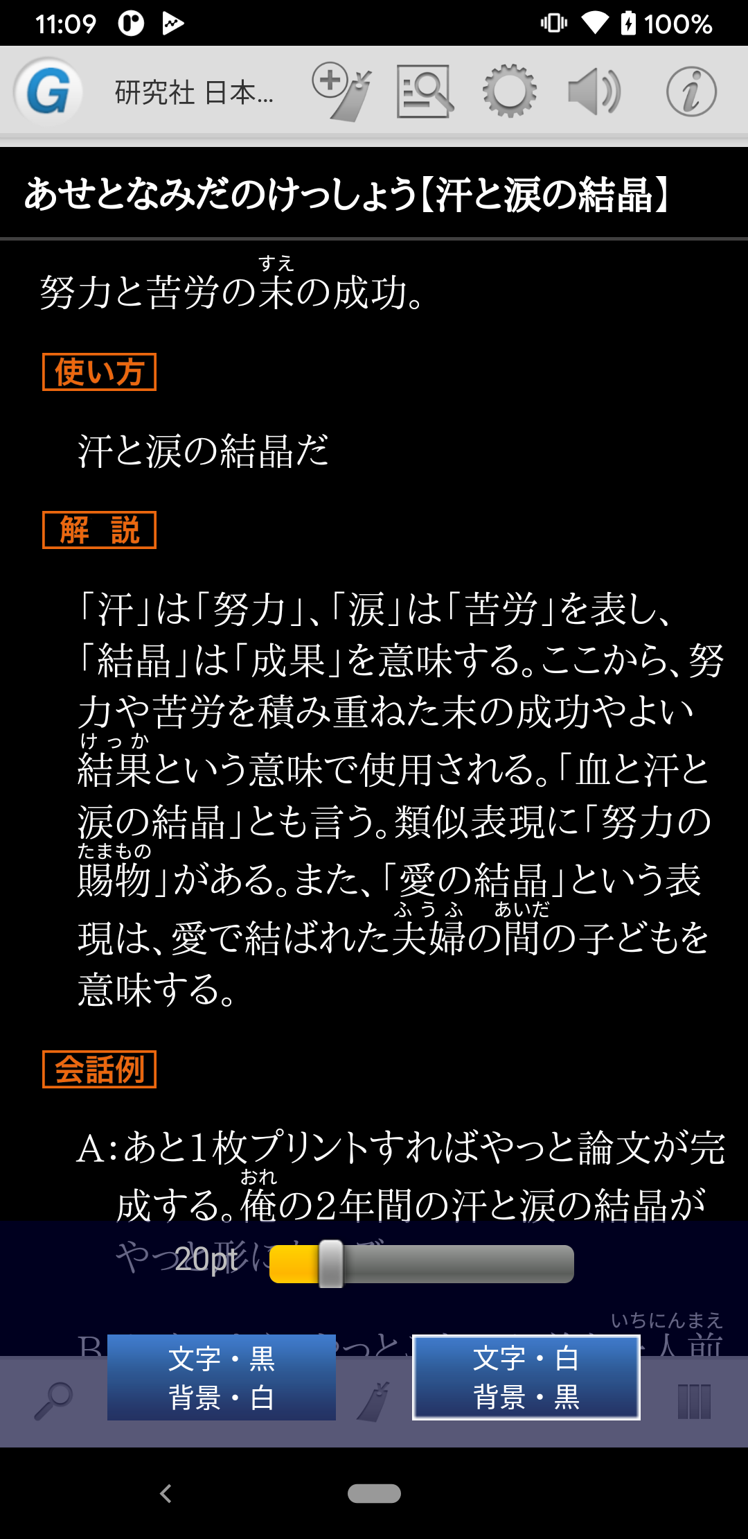 ・辞典項目のテキストは、文字サイズを細かく設定可能です。