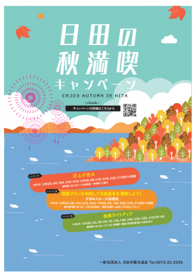 そこで、一般社団法人日田市観光協会は、この秋の観光シーズンに、「日田の秋満喫キャンペーン」を実施します。このキャンペーンを通して、一人でも多くのお客様にお越しいただき、「また日田に来たい!」と思っていただくことを祈念し、地域一丸となって取り組みます。