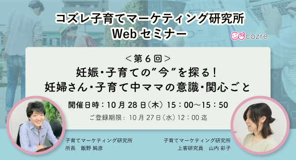 株式会社コズレの社内シンクタンク「子育てマーケティング研究所」は、2021年10月28日(木)に、子育て世代向けマーケティングWebセミナー「妊娠・子育ての“今”を探る!妊婦さん・子育て中ママの意識・関心ごと」を開催することを本日、お知らせいたします。
