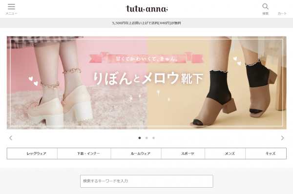 靴下・インナー・ウェア・服飾雑貨の、製造・販売・小売り・卸業を通して、「チュチュアンナ」ブランドを展開しています。ECサイトは2007年から開始しています。