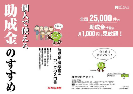 株式会社ナビット(東京都千代田区九段南、代表取締役:福井泰代)が運営する「助成金なう」では、「個人で使える助成金のすすめ」小冊子が、2021年10月6日より先着で200名ダウンロード可能です。