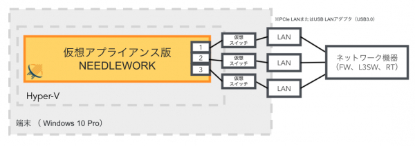仮想アプライアンス版は、Windows 10 Pro上の仮想化システムHyper-Vで動作いたします。