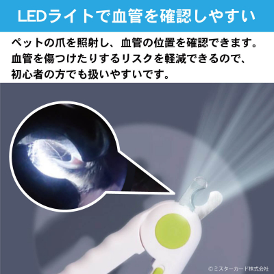 ミスターカード株式会社(本社所在地:埼玉県川口市)は、10月8日(金)より発売します。高輝度LEDライト搭載で血管の位置を確認しやすいので血管を傷つけたりするリスクを軽減!初心者の方でも扱いやすいです。刃の形状は爪をカットしやすい半円形。サビに強いステンレス製刃は耐摩耗性にも優れています。また、飛散防止カバーを使用することで、広範囲に爪を飛散しないため片付けが楽になります。グリップ部分にヤスリがついているので仕上げる際は本体を持ち替えるだけで使用できます。
