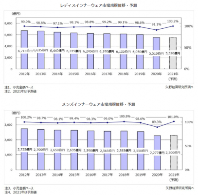株式会社矢野経済研究所(代表取締役社長:水越孝)は、国内のレディスインナーウェア、メンズインナーウェア小売市場を調査し、製品セグメント別の動向、参入企業動向、将来展望を明らかにいたしました。