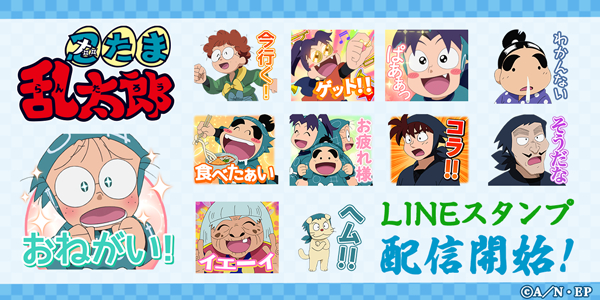 TVアニメ「忍たま乱太郎」のLINEスタンプが、大好評のLINE着せかえに続いて、株式会社インクルーズの販売アカウントより新登場です!記念すべきLINEスタンプの第1弾は、「乱太郎」、「きり丸」、「しんべヱ」、「土井先生」など、1年生と先生がメイン!日常使いしやすいスタンプとなっております。是非LINEスタンプでもTVアニメ「忍たま乱太郎」の世界をお楽しみください。