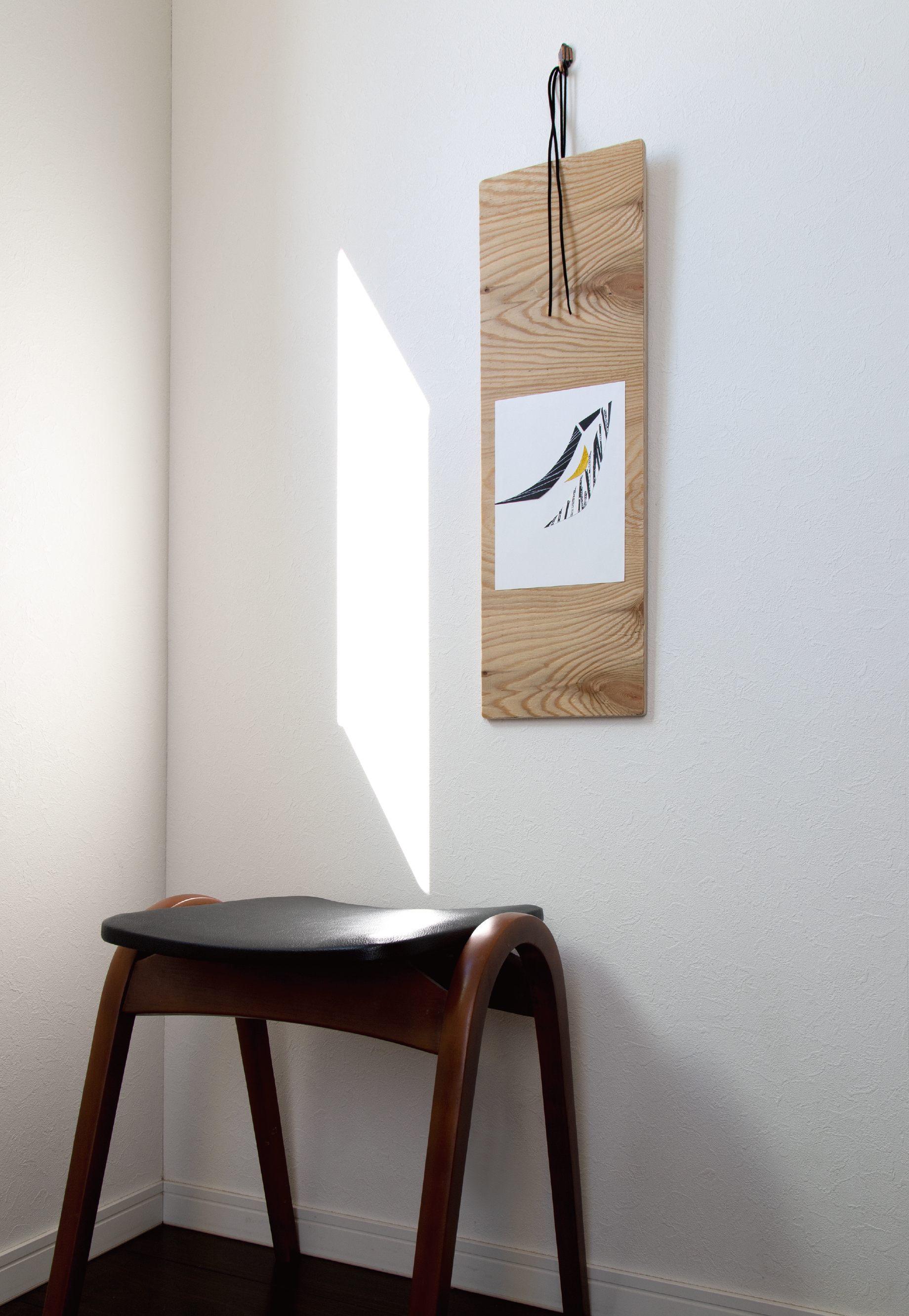 リビング、寝室には、キューブの灯り/タペストリー/掛け軸など