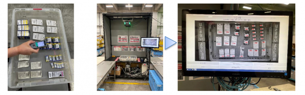 当社物流センター業務における小物商品の入荷検品作業では、一品毎にハンディターミナル(以下H/T)にて商品JANコード(以下、JAN)のスキャンを実施しておりますが、作業者の習熟度によるスキャン作業工数のバラつきや、スキャン漏れなどが課題となっていました。