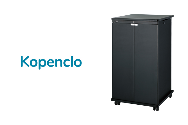 Kopenclo はネットワーク※2 を介して様々な機器の鍵をスマートフォンやタブレットで開閉操作する電子錠システム統合ソフトウェアです。この度、オーエスブランドの製品でAV キャビネット(KCS シリーズ)に初めて実装いたしました。