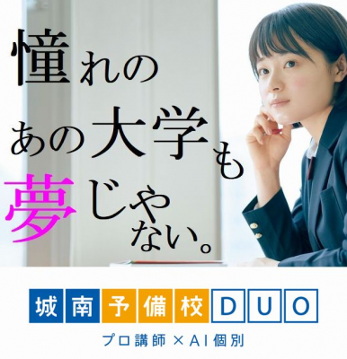 「城南予備校DUO」は、AI教材atama+(アタマプラス)個別指導と、プロ講師による演習指導で、新しい大学入試に対応する予備校。21年度からは、総合型・学校推薦型選抜の専門塾「城南AO推薦塾」をシンクタンクとして一般選抜も含めて全ての大学入試に対応できるよう、バージョンアップしています。