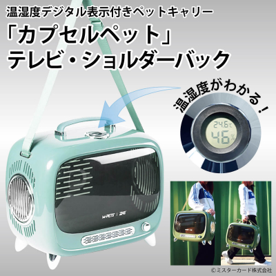 ミスターカード株式会社(本社所在地:埼玉県川口市)は、温湿度デジタル表示機能付きのペットキャリー「カプセルペット テレビ・ショルダーバック」 を2021年10月21日(木)に発売いたします。犬ちゃんや猫ちゃんが快適に過ごせる温湿度をチェックしながら、ペットと一緒にお出かけできるペットキャリーは、ショルダーと手持ちの2WAYで持ち運べます。我が家のアイドルペットをブラウン管テレビのユニークでSNS映えするデザインはペットに慣れてもらうまで部屋のインテリアとしても楽しめます。窓から手を入れてコミュニケーションのとれる小窓付きなど便利なペットキャリーはいかがでしょう。