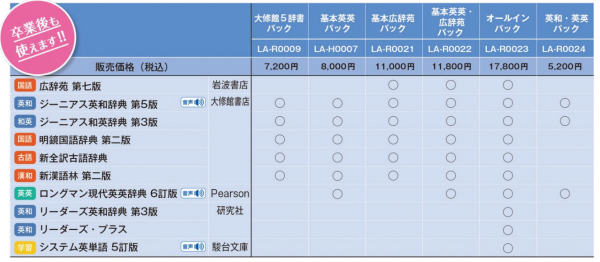 「セイコー辞書アプリ」は2016年の販売開始以来、機能強化を進めるとともに、収録コンテンツを拡充してきました。新たなラインアップでは、学校の要望に応え、収録辞書の組み合わせから選べるよう、基本となる学習辞典のパックから、英英辞典、広辞苑などを組み入れたパックまで6種類を提供します。さらに、学校での一括採用の場合には辞書の組み合わせをカスタマイズするサービスを行います。