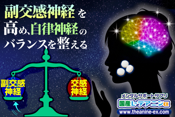 テアニンには、ストレス化において集中力を高めつつ、副交感神経の働きを高めてリラックスの度合いを引き上げ、メンタルコンディションを整える働きがあります。