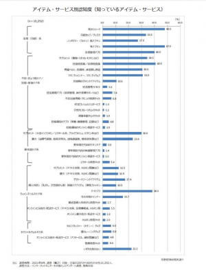 各アイテム・サービスについて知っているか尋ねたところ、「吸水ショーツ」(48.0%)、「布ナプキン」(47.9%)、「生理管理アプリ」(40.0%)など生理(月経)系アイテム・サービスの回答率が高い結果となった。
