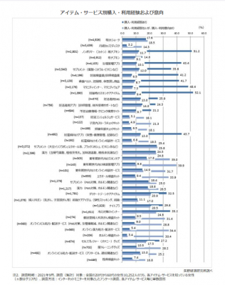 特に更年期ケアアイテム・サービスについては、「購入・利用経験ないが、購入・利用意向あり」と答えた人の比率が、どのアイテム・サービスにおいても20~30%以上となっており、他の分野に比べて、こうしたアイテムやサービスを使って自分をケアすることへの関心が高いという調査結果となった。