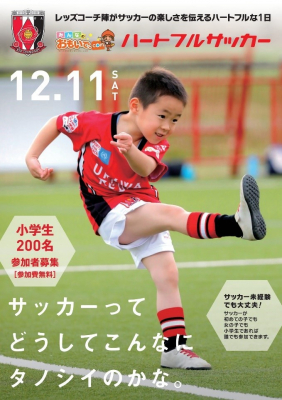 2回目の開催となる『みんなのおもいで.com ハートフルサッカー』は、小学生であればサッカー経験がなくてもどなたでも参加することができる参加費無料のサッカー教室です。元浦和レッズ選手を含むコーチたちが楽しくサッカーを教えます。募集締め切りは11 月17 日(水)必着です。沢山のご応募をお待ちしています。