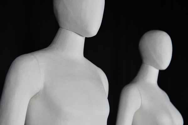 ※トルソ:トルソは、イタリア語の「torso(胴体)」が由来。アパレルショップ等で衣料ディスプレイに使用される上半身型の人形。頭部、胴体のみの場合と、頭部と腕のいたものなどの種類がある。全身の人形をマネキンと呼称している。