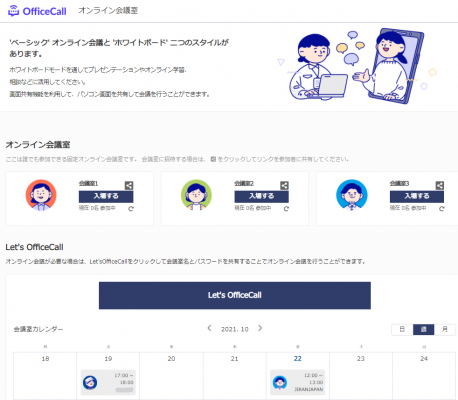 オフライン会議室のような感覚で使える「自社専用オンライン会議室 「OfficeCall」