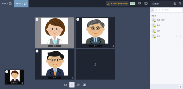 その都度のURL発行の手間も必要ないので、空いていればすぐに会議が行えます。