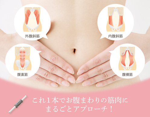 それを解消するのが「マルチリフトローラー」です。腹筋をほぐすことで、血行促進効果があります。また、物理的に下っ腹を押し上げることでお腹がスッキリします!
