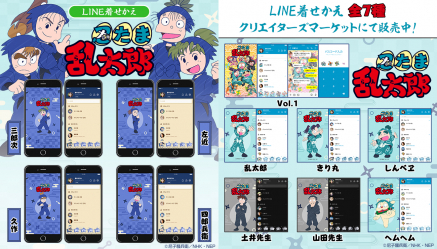 「乱太郎」、「きり丸」、「しんべヱ」の三人組を中心に、忍者のたまご「忍たま」たちがつどう忍術学園の「あかるく、たのしく、ゆかい」な毎日を描いた大人気シリーズアニメ。TVアニメ「忍たま乱太郎」のキャラクター別LINE着せかえシリーズの第2弾として、4点の最新作が、先行配信中のLINE着せかえに続きインクルーズより新登場です!今回は 「池田三郎次」、「川西左近」、「能勢久作」、「時友四郎兵衛」の忍術学園2年生のキャラクター別デザインとなっております。お気に入りのキャラクターでLINEを着せかえてみてはいかがでしょうか?是非LINE着せかえでもTVアニメ「忍たま乱太郎」の世界をお楽しみください。