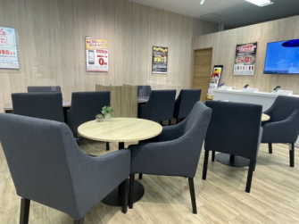 また、およそ13坪の店内は、ぬくもりのある木目調に統一し、少しお時間のかかるご契約についても、おくつろぎいただけるよう1人掛けソファチェアに変更いたしました。お席数も30%アップしています。