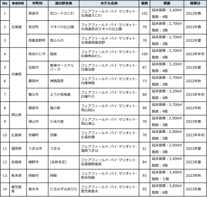 2022年春から2023年秋までに、8道県14か所で合計1,184室を開業する予定です。