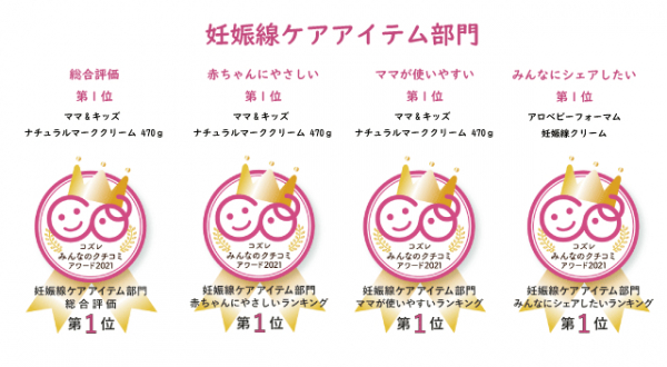 株式会社コズレ(本社:東京都千代田区、代表取締役:田中穣二郎、以下コズレ)は、末子妊娠中から2歳までの子どもをもつコズレ会員のママを対象に「妊娠線ケアアイテムに関するアンケート」を実施(調査期間:2021年9月6日~2021年10月6日、有効回答者数:3,368名、インターネット調査)し、その結果から『コズレみんなのクチコミアワード2021』妊娠線ケアアイテム部門のランキングを本日発表いたします。