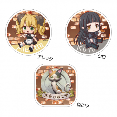 「異世界食堂2」の「アレッタ」「クロ」「ねこや」の可愛らしいイラストをプリントした