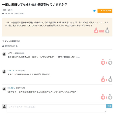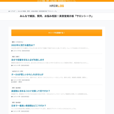 サロントークは美容室やヘアスタイルに関する話題をみんなと共有することができる掲示板・コミュニティーサービスです。
