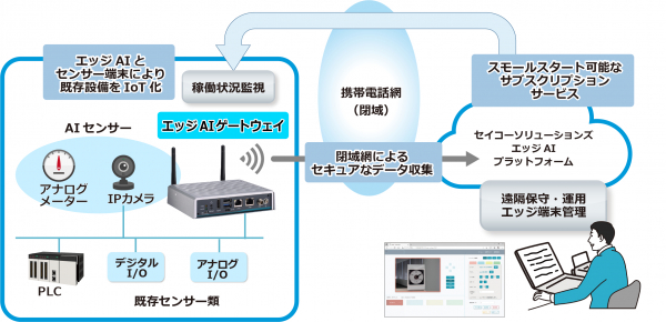 セイコーソリューションズ株式会社(代表取締役社長:関根 淳、本社:千葉県千葉市、以下 セイコーソリューションズ)は、このたび、エッジAIによる映像解析を活用し、企業のデジタルトランスフォーメーション(以下 DX)を支援する「エッジAI IoTゲートウェイソリューション」を開発し、2021年度中に提供を開始します。