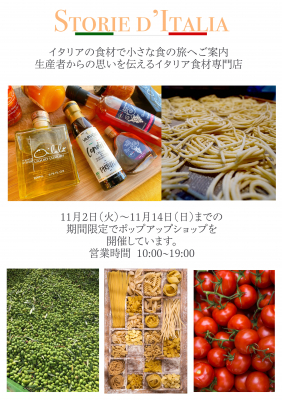 11月2日(火)~11月14日(日)の期間、イタリア食品専門店の「STORIE
