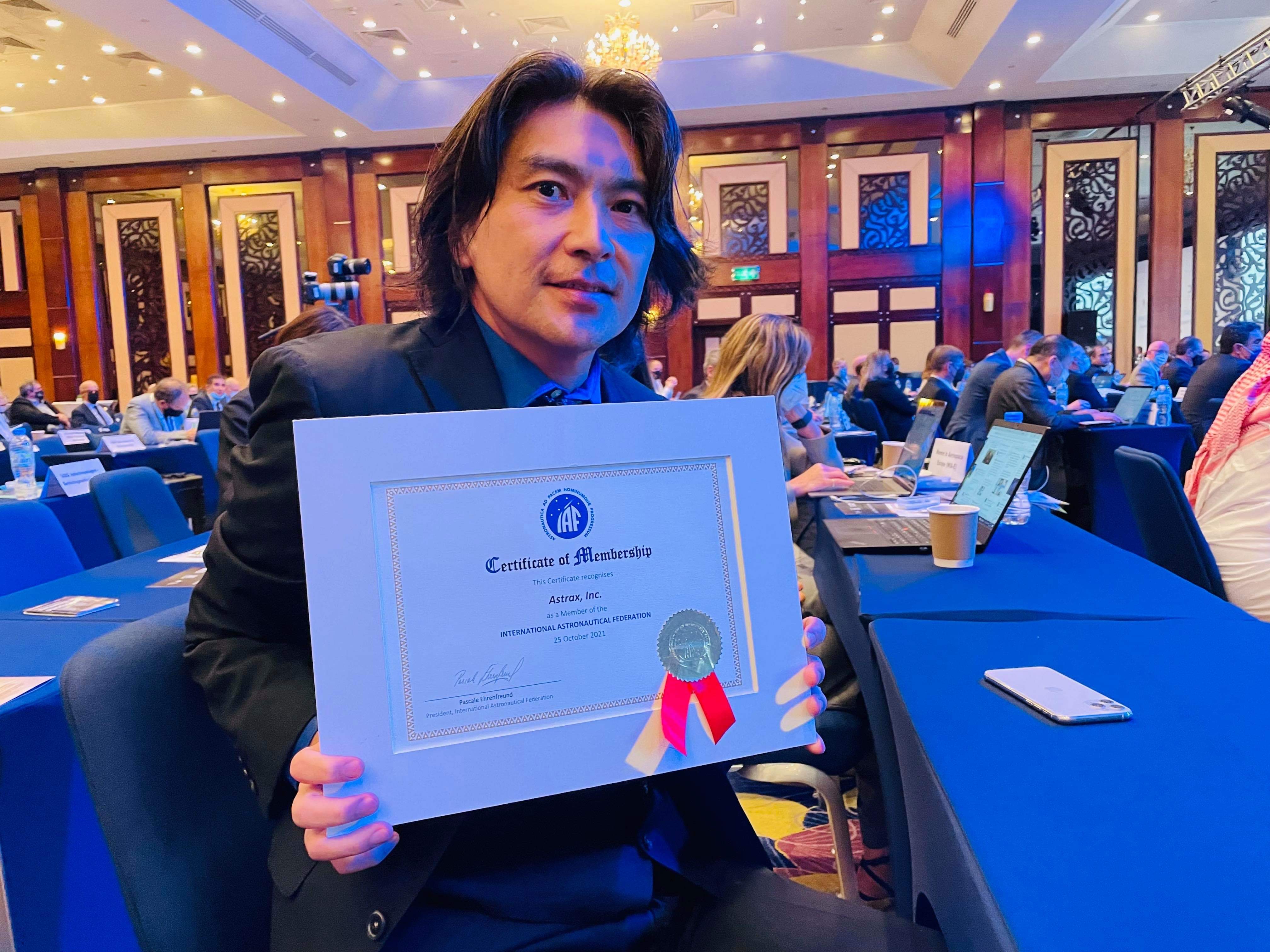 人々の夢を宇宙で実現させる民間宇宙サービスプラットフォームを提供する宇宙ベンチャー企業、株式会社ASTRAX(アストラックス、以下 ASTRAX、本社:神奈川県鎌倉市、代表:代表取締役・民間宇宙飛行士 山崎大地)は、2021年10月25日から29日までアラブ首長国連邦のドバイのワールドトレードセンターで開催された世界最大の宇宙業界の国際会議「第72回国際宇宙会議(IAC 2021)」の会期中、2021年10月25日に行われた国際宇宙航行連盟(IAF)総会において、国際宇宙会議の主催者である国際宇宙航行連盟(IAF)のメンバーとして正式に承認されましたので報告いたします。