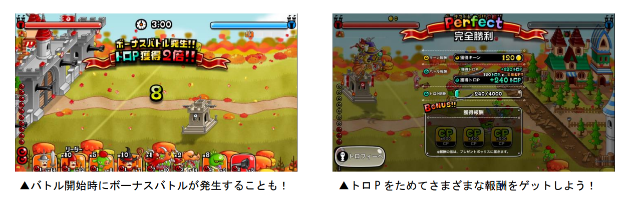 11月6日(土)から「トロフィーバトル」が開催されます。今回は「ボーナスフィーバー」という獲得“トロP”がすべて2倍以上になるイベントを同時開催。トロP大量獲得を目指して、バトルに参加しましょう!