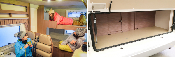 キャンピングカーなら広々とした積載スペースがあるので、荷物を積んでも十分な車内スペースが確保されます。