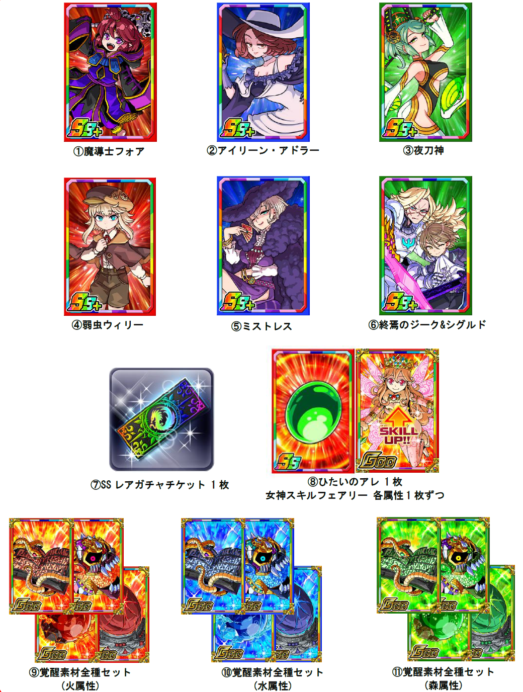 ・女神スキルフェアリー 各属性1枚ずつ