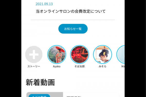 会員・管理者はオンラインサロンのトップページからストーリーを投稿でき、ストーリー投稿は24時間で自動消去されます。