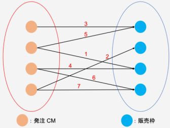 メタデータ社では、CMと放映枠を点にして左右に並べ、1つの割付け(マッチ)を枝とし、各枝の上に、マッチした場合の得点を様々な要因から算出されるようにした上で、全マッチの合計得点がほぼ最大になるようなデータ構造とアルゴリズムを適用することとしました。このアルゴリズムを備えたエンジン(ソフトウェア)の計算時間は、従来は、点(CM、放映枠)の数の3乗に比例するものが最高速でした。そこを改良して、最終のマッチ数(枝の数)に比例するだけの時間で超高速に計算させるxTechの実装、開発に成功しました。これは、従来は量子コンピュータの領域と考えられていた大規模な組み合わせ最適化問題を普通のPCのCPU 1つで解けるようにしたことと言うことができます。
