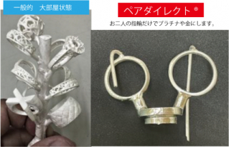 今回 入稿いただいた結婚指輪のデータを使い3Dプリンターで出力したレジンを 日本初の商用運用(当社調べ)のプラチナのダイレクトキャスト(鋳造)を二人だけの個室仕様でキャスト(鋳造) するサービス名「ペアダイレクト(R)」の商標が取得できた記念として DJFアドバイザーがお二人の3Dデザインをサポートする「サポートデータ入稿プラン 税込み220,000円」を ご自身単独で結婚指輪データを作成し入稿する「セルフデータ入稿プラン」と同じ価格 税込み176,000円に応援価格として期間限定でリリースします。