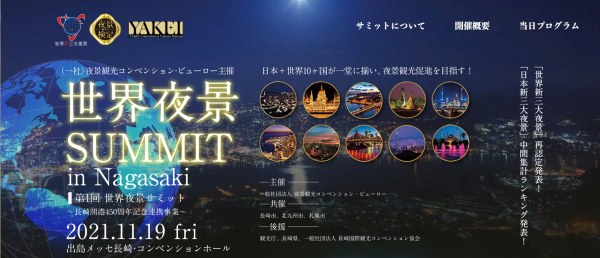 一般社団法人 景観光コンベンション・ビューロー(代表理事・丸々もとお)は、2021年11月19日(金)、長崎県長崎市にて「世界夜景サミットin 長崎」を開催いたします。(共催:長崎市、北九州市、札幌市 後援:観光庁、長崎県、一般社団法人 長崎国際観光コンベンション協会)