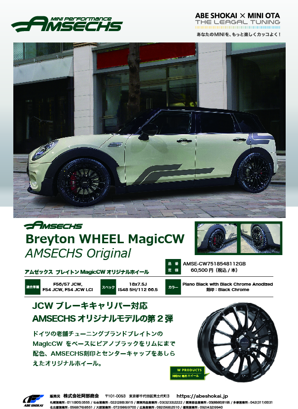この度株式会社阿部商会(代表取締役社長:阿部 文保)では、取り扱いブランドAMSECHS(アムゼックス)よりブレイトンMagicCWオリジナルホイールを11月より新発売いたしました。