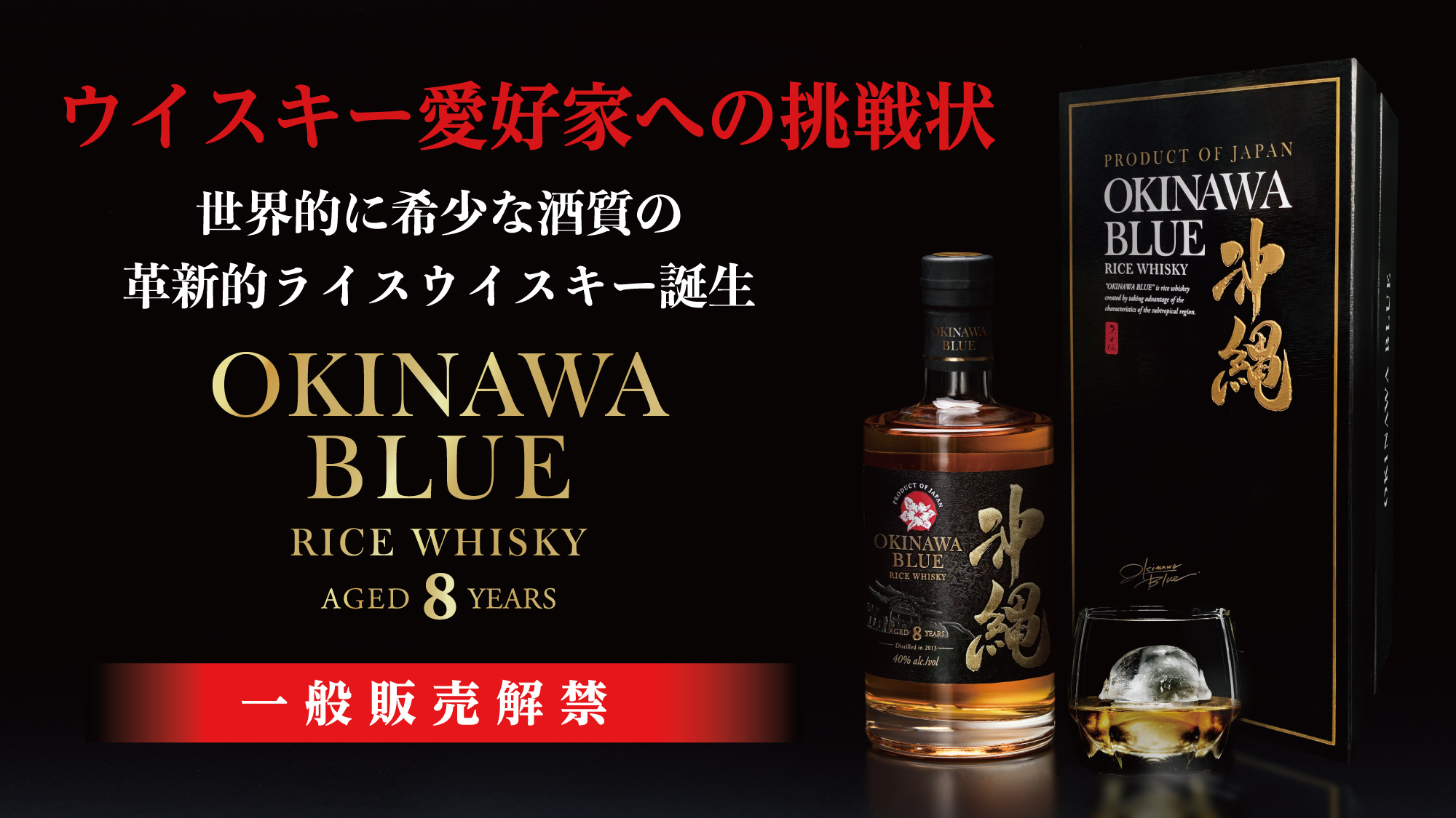 ライスウイスキー 『沖縄 BLUE 8年』は、「熟成し続ける」という今までのウイスキーにほぼなかった希少な酒質を備えたウイスキーです。