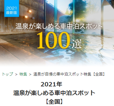 「【全国 温泉が楽しめる車中泊スポット100選」